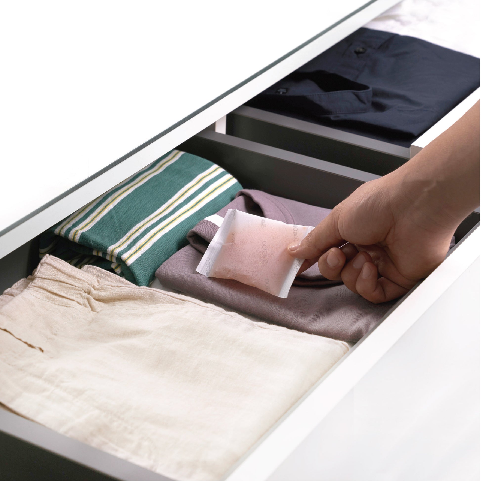 | • Keep clothes and shoes away from moisture. • Eliminating unpleasant odor from clothes and removing musty smell from wardrobes. shoe cabinets. • Certified antibacterial and odor elimination effects. |